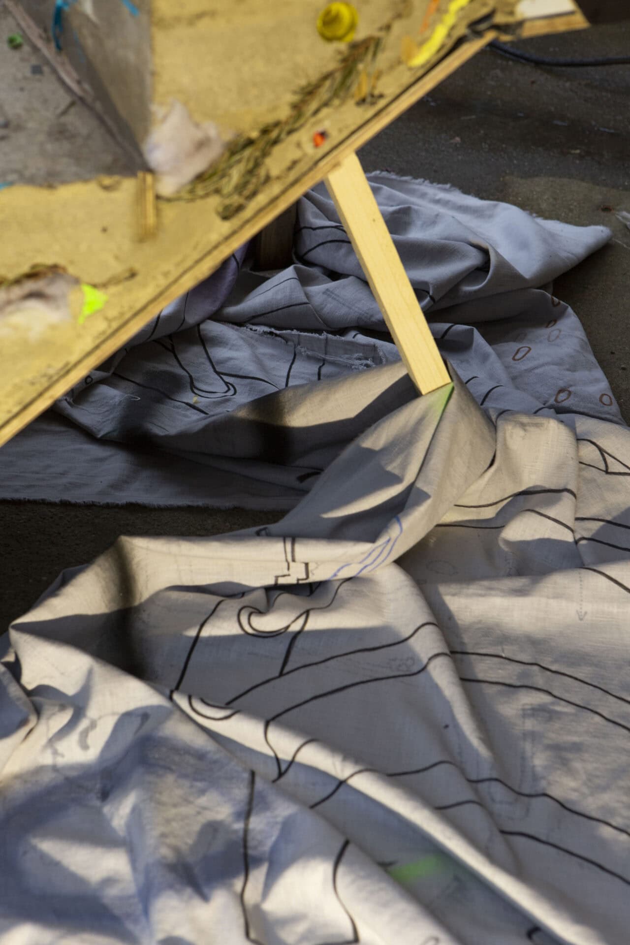 Under its weight, the ruin trapped the drawings that recalled moments lived in the city and which were captured on fabric.
