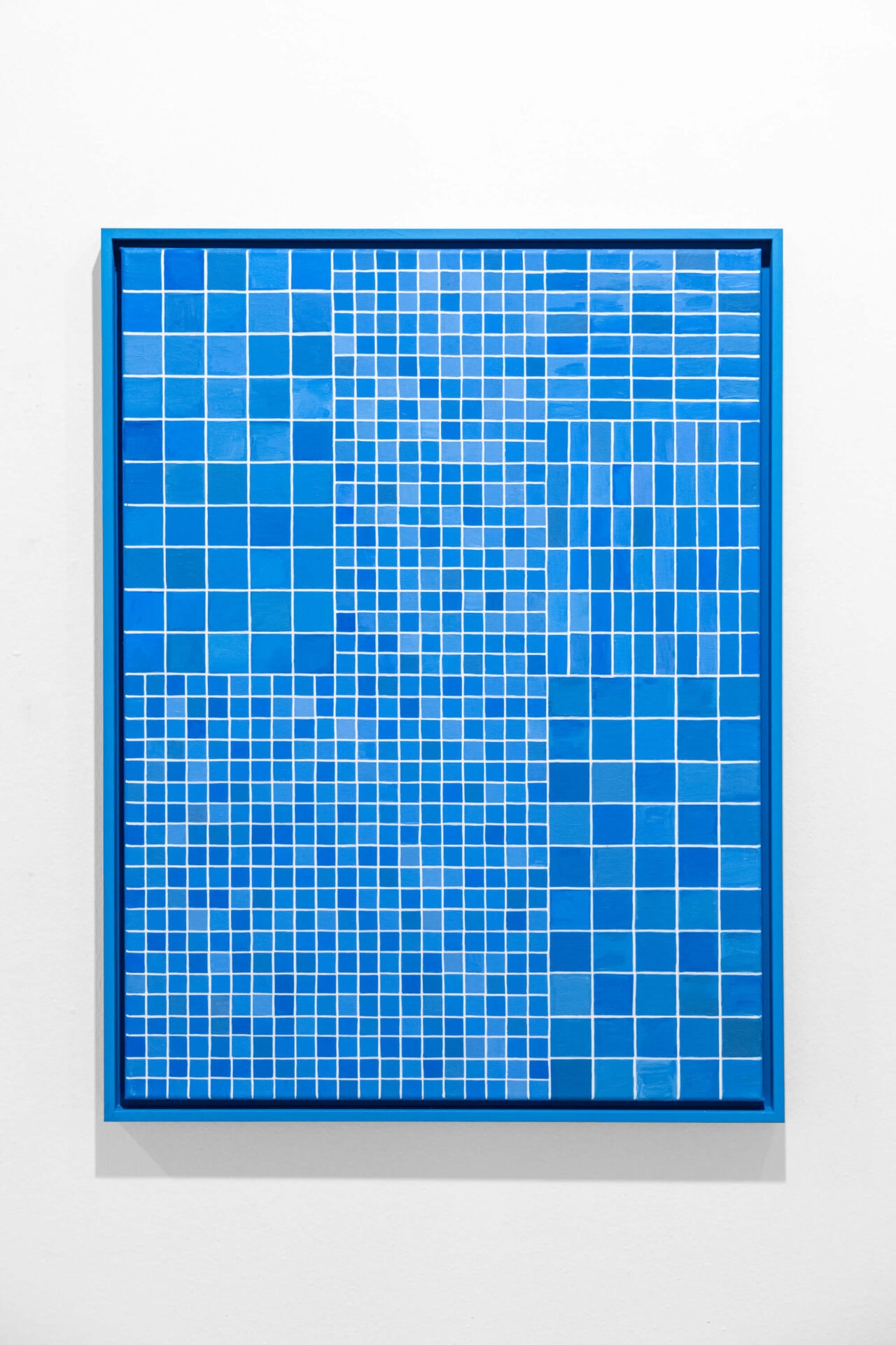 These tiles are blue and of different sizes and shapes.