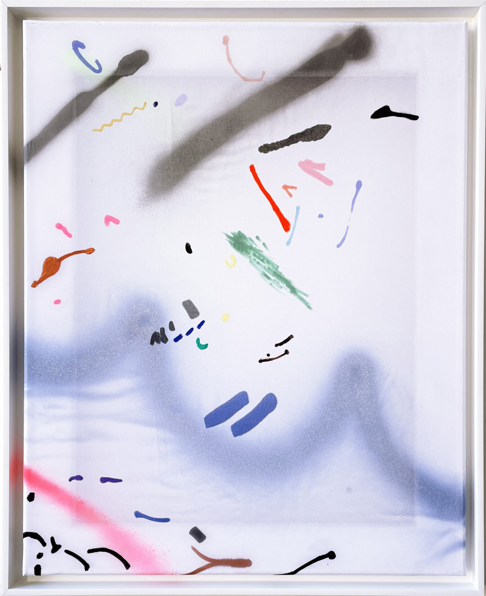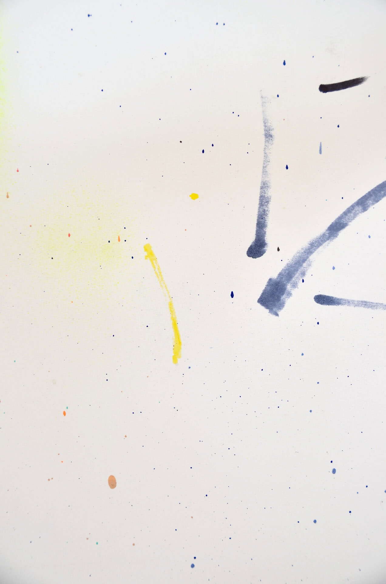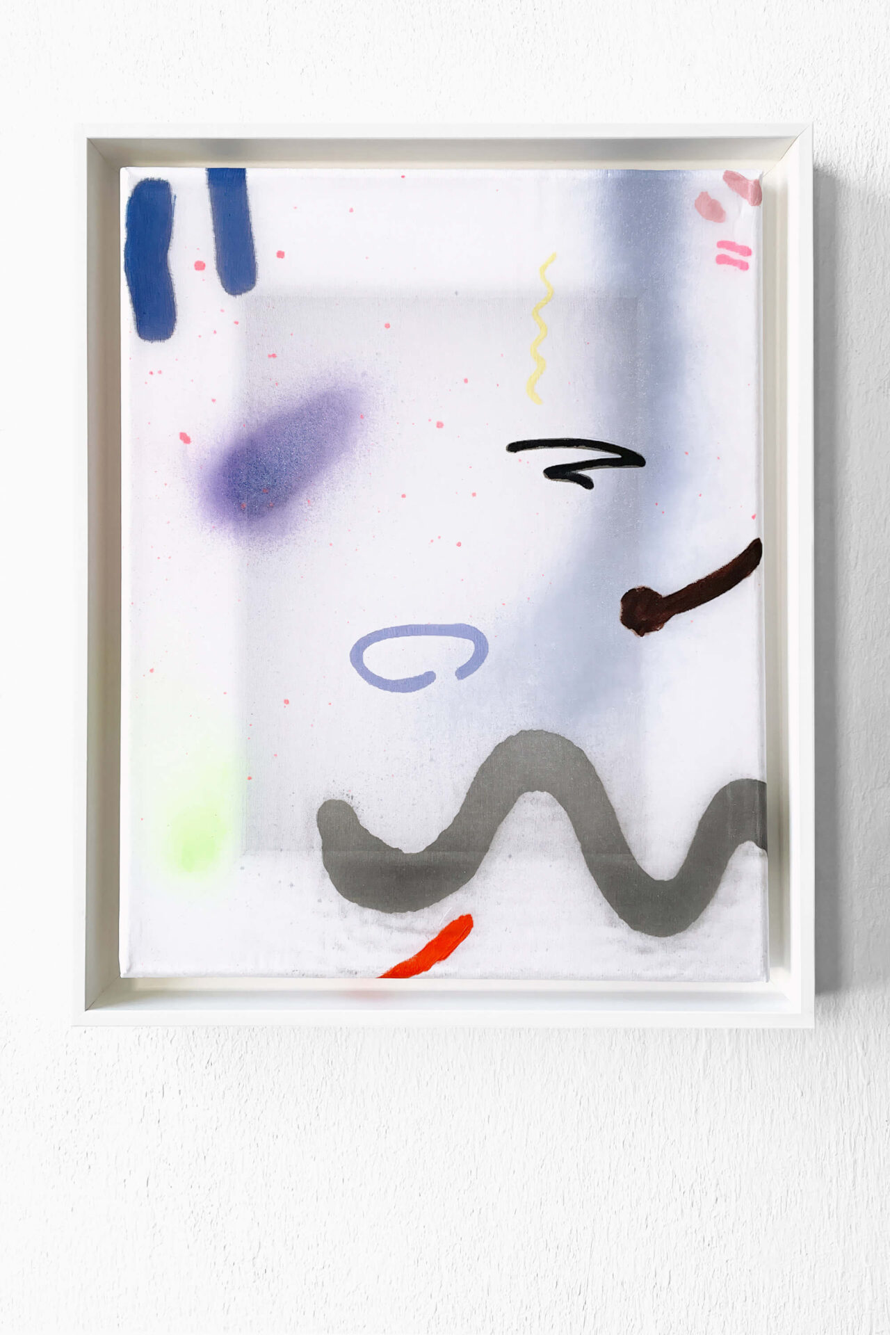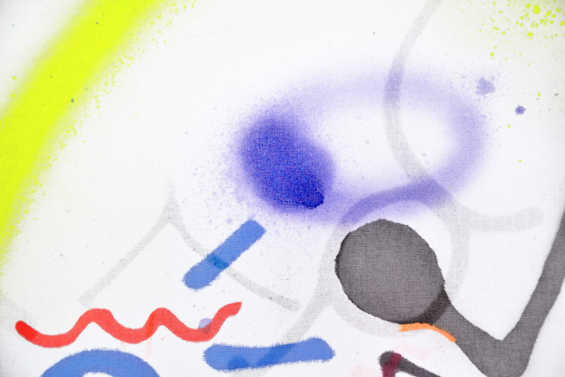 Both the materials and the methods of making art interfere with the production process: methacrylates, plastics, lacquers, glitter, and synthetic fabrics challenge the temporality of the artwork within consumer society and present themselves as a conglomeration of partial realities. Signs and lines found in public spaces are appropriated and subsequently reproduced; an attempt at painting outdoors at night, blindfolded, on an opaque fabric reveals a version of a starry sky. In these art-making methods, the involvement of common environments integrates the artwork into everyday life.